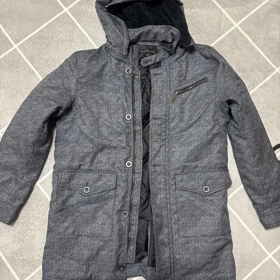 그레이 후드 부착 따뜻한 패딩 자켓 M