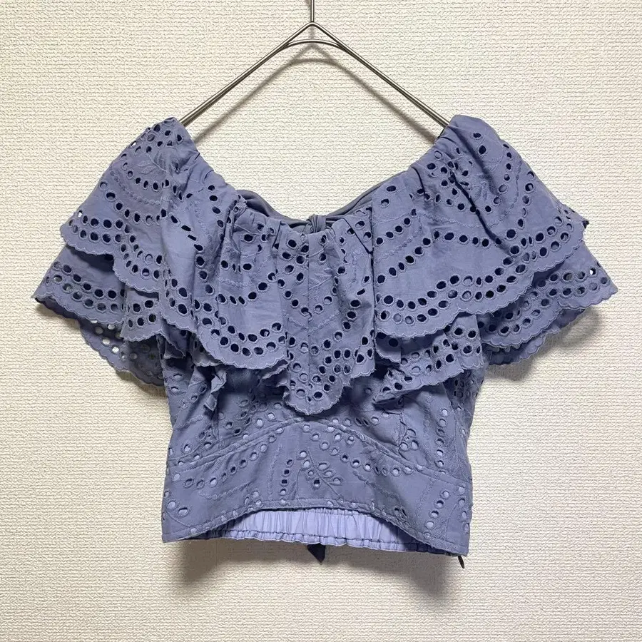 MERCURYDUO의 레이스 프릴이 인상적인 오프숄더 상의입니다.