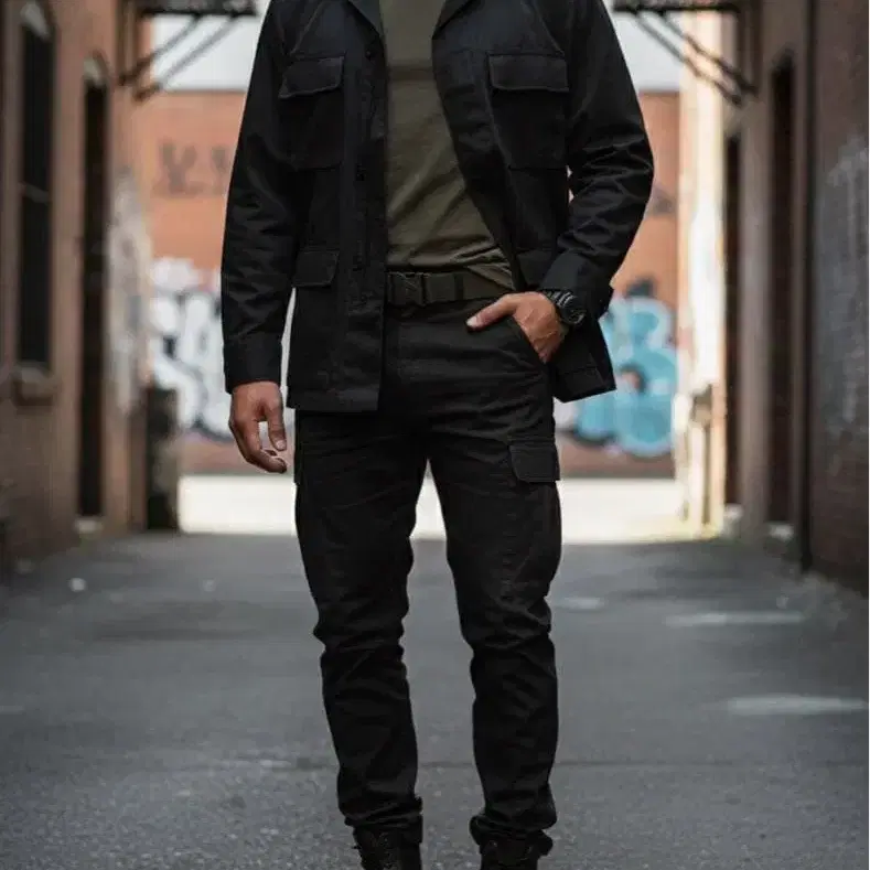 블랙 밀리터리 자켓, 4개의 포켓으로 기능성도 뛰어납니다. 1번째 이미지는 착용 이미지입니다. - 색상: 블랙 - 스타일: 밀리터리 자켓 - 포켓 수: 4 - 소재: 코튼 혼방 - 디자인: 프론트 오픈, 단추식 방문해 주셔서 감사합니다. 어깨 너비/가슴 너비/소매 길이/기장 어깨 너비 - 52cm 가슴 너비 - 63cm 소매 길이 - 63cm 기장 - 74cm 색상 - 블랙 계열 얼룩, 찢김, 냄새 등 - 있음 주로 어깨와 소매에 여러 얼룩이 있습니다.