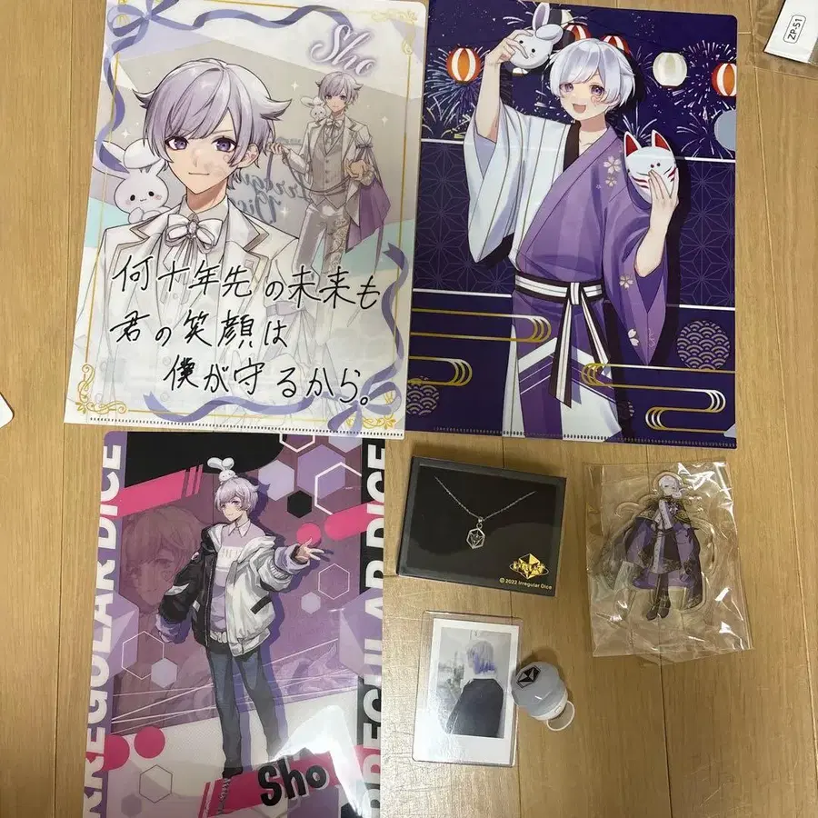 이레이스의 쇼토 군 굿즈 세트입니다. 미사용입니다. 소중히 보관했습니다 ✋ 목걸이(미사용), 포스터(훼미리마트 콜라보) 아크릴 스탠드, 폴라로이드, 반지, 펜라이트 클리어 파일 6개 세트입니다. 낱개 판매 ❌ 방문해 주셔서 감사합니다.