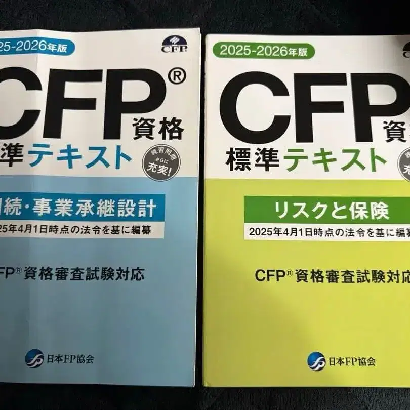CFP 자격 취득을 위한 표준 텍스트 2권 세트. 리스크와 보험, 상속 사업 승계 설계를 망라합니다.
