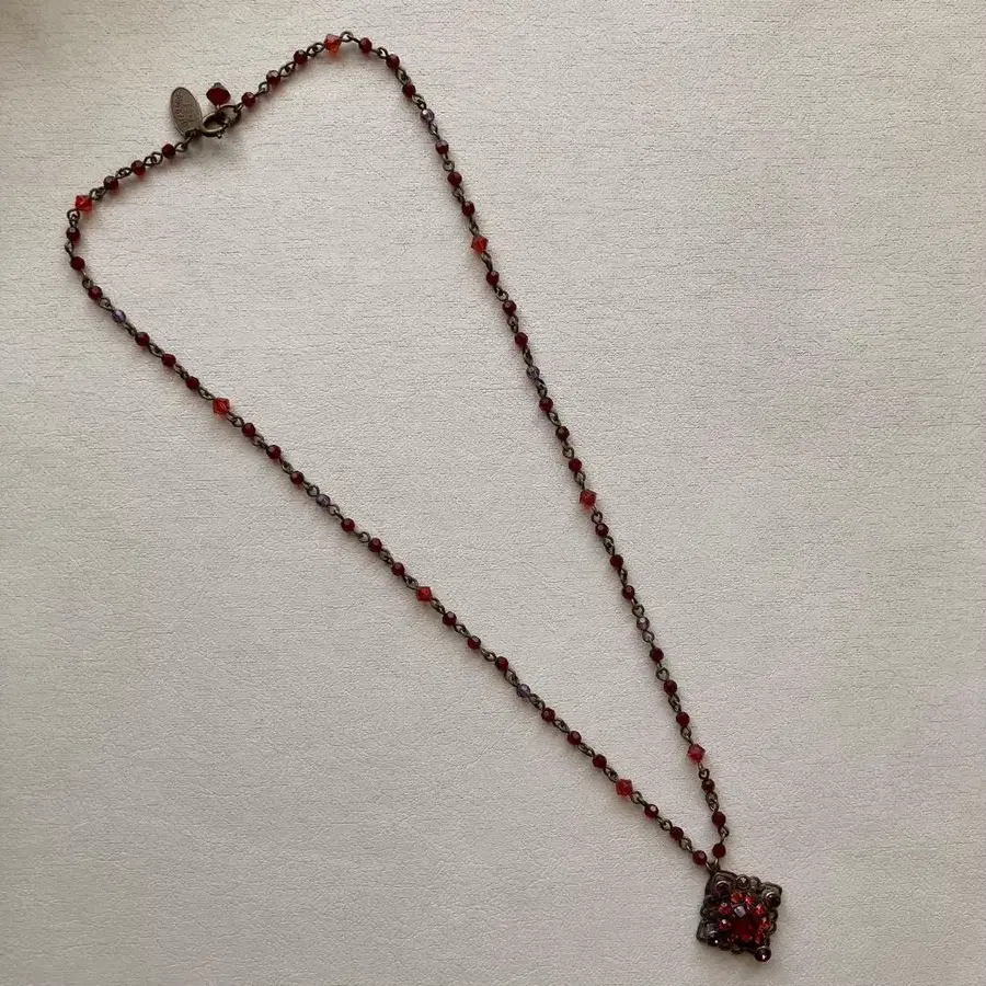 앤티크 진한 빨간색 믹스 짙은 빨간색 화이트 하트 목걸이