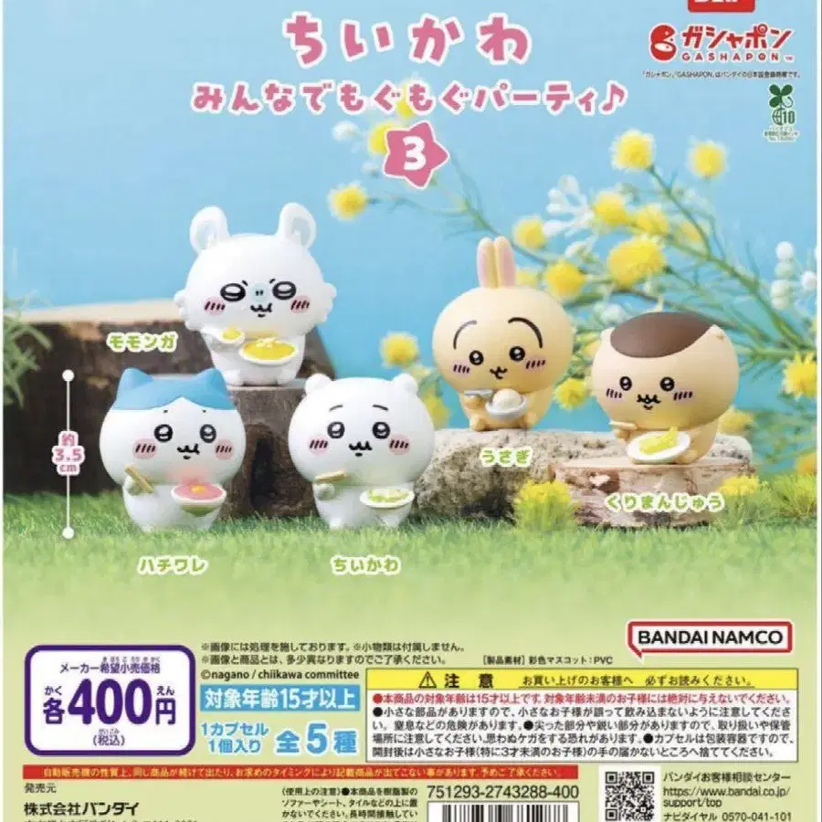 치이카와 (먼작귀) 모두 함께 냠냠 파티 3종 컴프 세트 캡슐은 부속되지 않습니다. 낱개 판매는 대응하지 않습니다.
