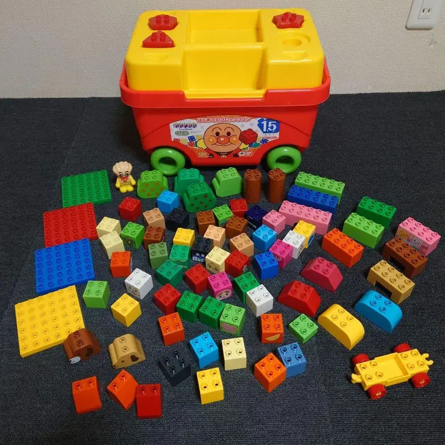 호빵맨의 [처음 블록 왜건] 새 상품으로 구매했지만, 분실한 것도 있어 모두 갖춰져 있지는 않습니다. 2세트 구매했기 때문에 같은 블록이 섞여 있어 블록 수는 조금 더 많습니다. 사진에 보이는 것이 전부입니다.