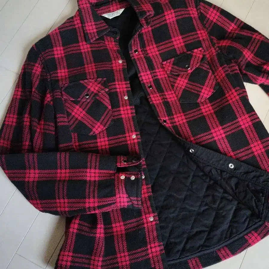 파이브 브라더 블랙 레드 체크 플란넬 셔츠 안감 퀼팅