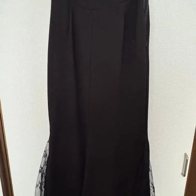 사이드가 레이스입니다. 원단은 도톰하고 튼튼합니다. 시착만 한 상품, 자택 보관입니다. 레이스와 원단의 콤비네이션이 특징인 블랙 롱 스커트. - 색상: 블랙 - 소재: 레이스와 원단의 콤비네이션 - 디자인: 레이스업 백 디자인 방문해 주셔서 감사합니다. 사이즈 - FREE SIZE