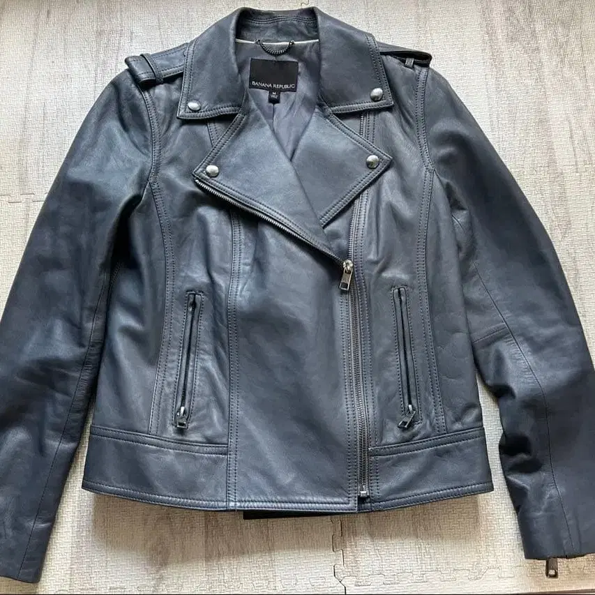 가죽 라이더 자켓, 지퍼 포켓 부착.