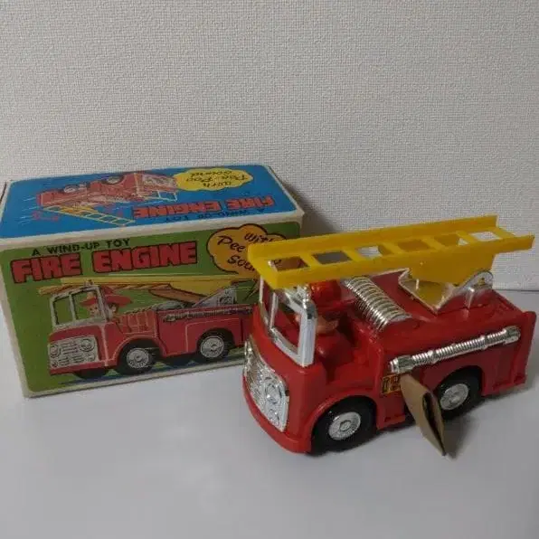 레트로한 소방차 완구입니다. 태엽 부분은 고장 나서 돌아가지 않습니다.