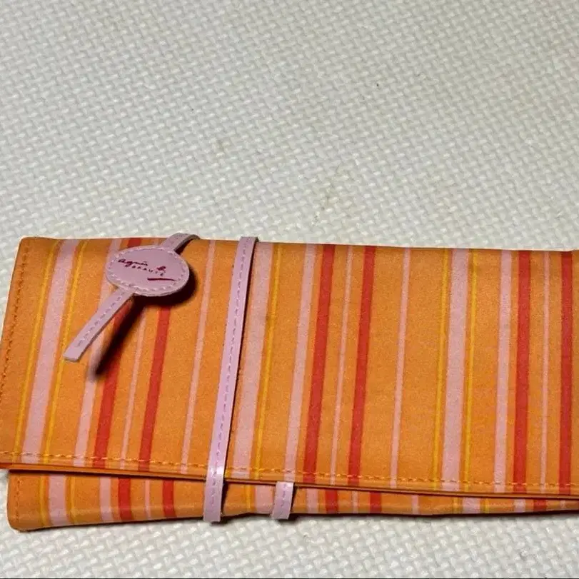 오렌지와 핑크 스트라이프 디자인의 장지갑. 카드 포켓이 있어 실용적입니다. - 색상: 오렌지와 핑크 스트라이프 - 내부 구조: 카드 포켓 있음 - 상태: 작은 얼룩 있음 방문해 주셔서 감사합니다.