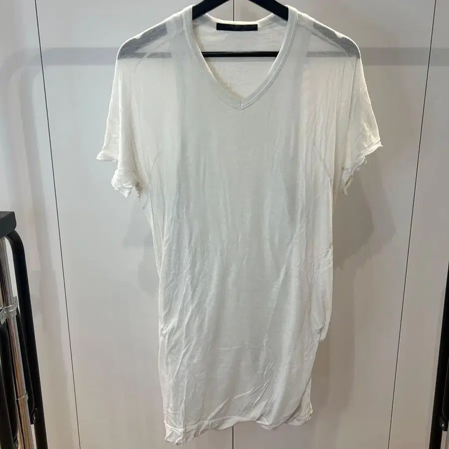 얇은 소재의 화이트 V넥 티셔츠. 심플한 디자인으로 평소 착용에 최적입니다.