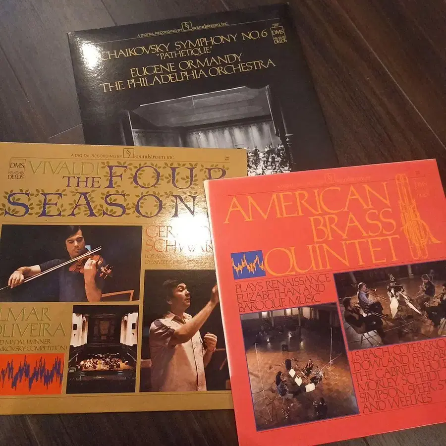 레코드, 대체로 좋은 상태입니다(*´∇`) 자켓 차이콥스키의 바닥면 5cm 정도 찢어졌습니다. 아메리칸 브라스 퀸텟의 등 부분이 퇴색되었습니다. 엘머 올리베이라 & 슈왈츠 비발디 사계 오먼디 차이콥스키 비창 아메리칸 브라스 퀸텟