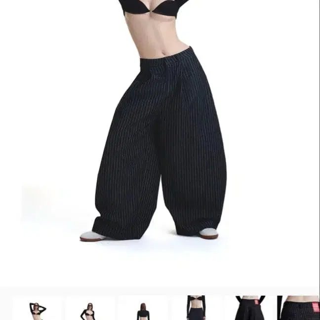 스트라이프 슬랙스 와이드 팬츠 다크 그레이 push push 스타일