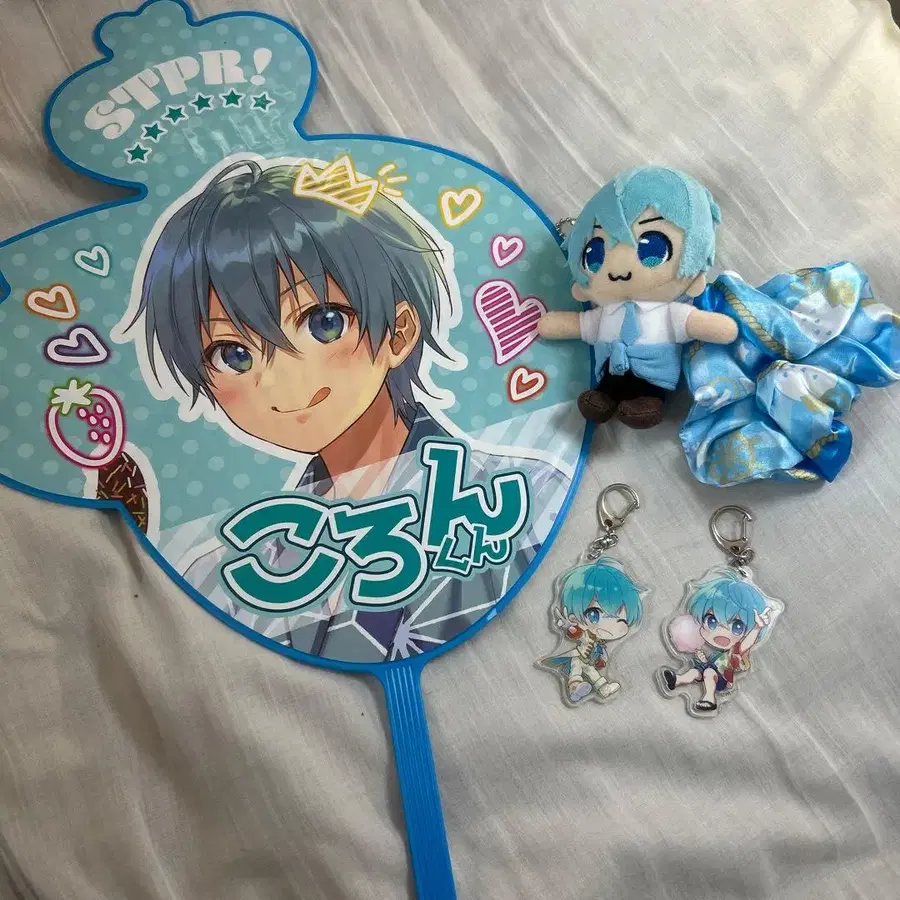 부채, 봉제 인형, 스크런치, 키링 세트입니다. - 캐릭터명: 코론 - 상품 타입: 부채 - 색상: 파랑 - 부속품: 봉제 인형, 키링 - 사인: 사인 포함 방문해 주셔서 감사합니다.