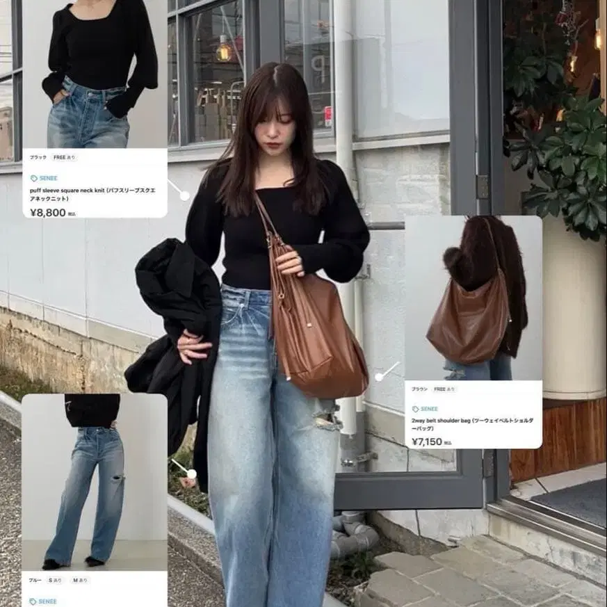 SENEE 퍼프 슬리브 스퀘어 넥 니트 사이즈 - FREE SIZE 컬러 - 블랙 계열 계절 - 가을/겨울 얼룩, 찢김, 냄새 등 - 없음