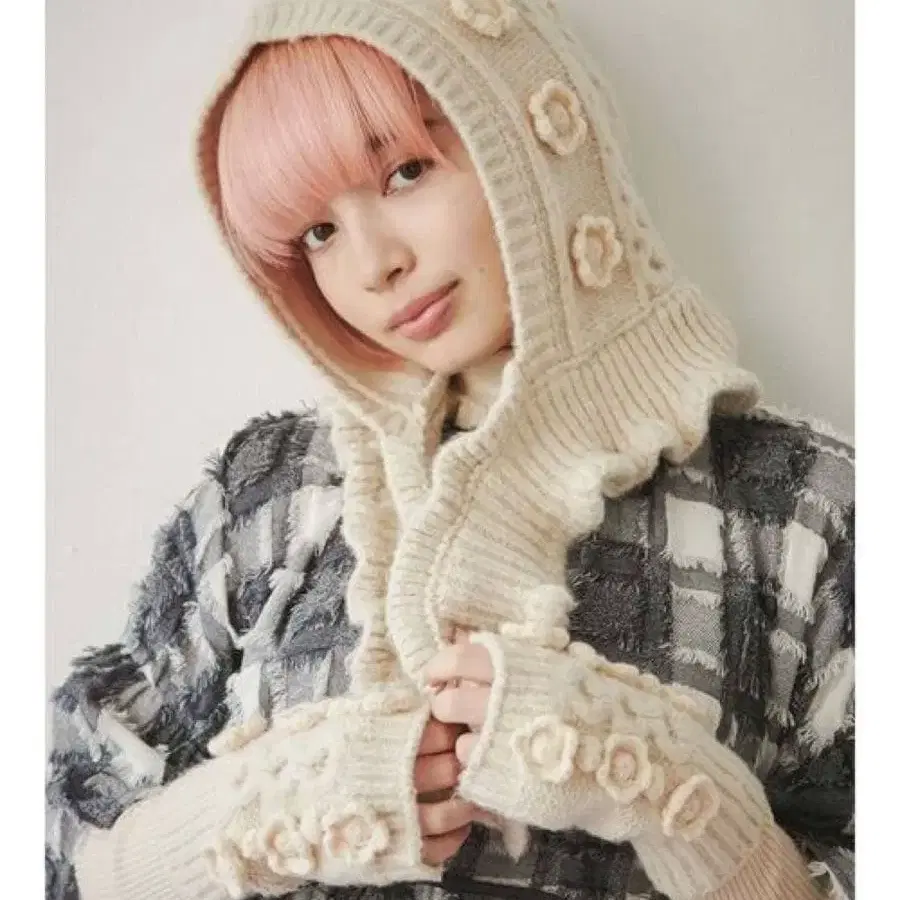 즉시 구매 ○ 메리제니의 니트 발라클라바입니다. 상품명: 꽃 니트 발라클라바 색상: 아이보리