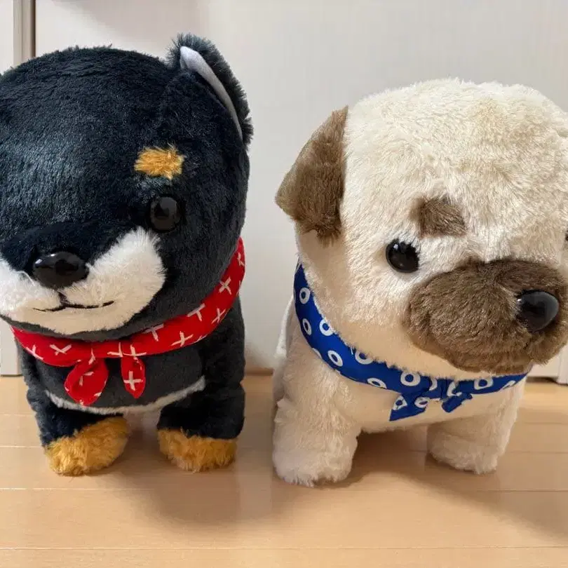 시바견과 퍼그의 귀여운 봉제 인형 세트. - 종류: 봉제 인형 - 견종: 시바견, 퍼그 - 색상: 블랙, 크림 - 반다나 색상: 빨간색, 파랑 방문해 주셔서 감사합니다.