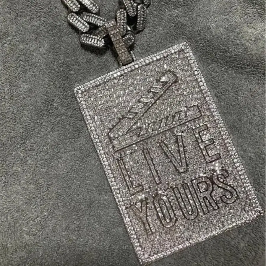 큰 [ LIVE YOURS ] Central cee 착용입니다. 지르코니아이지만 모이사나이트의 빛깔에 가깝습니다. 쿠바 체인은 포함되지 않습니다. 탑만입니다.