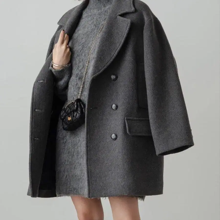 그레이 더블 브레스트 울 피 코트