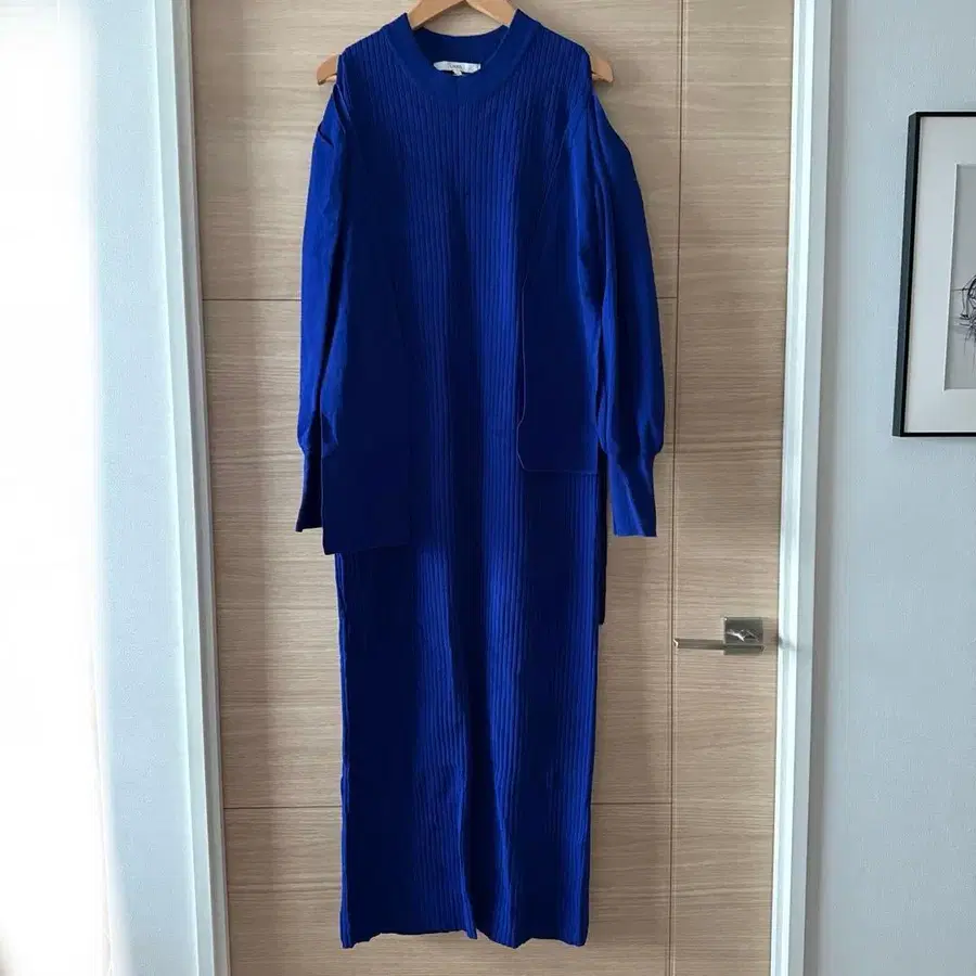 UN3D. 3D 리브 니트 오프숄더 긴팔 원피스, 선명한 파란색이 특징입니다. 어깨 부분이 파여 있습니다. 2~3회 착용했지만 조심스럽게 다루었기 때문에 흠집이나 얼룩은 없을 것으로 생각됩니다. 인터넷으로 구매했습니다. - 색상: 파랑 - 디자인: 리브 편직 - 소매: 긴팔 - 스타일: 오프숄더 방문해 주셔서 감사합니다. 사이즈 - 36 (S 상당)