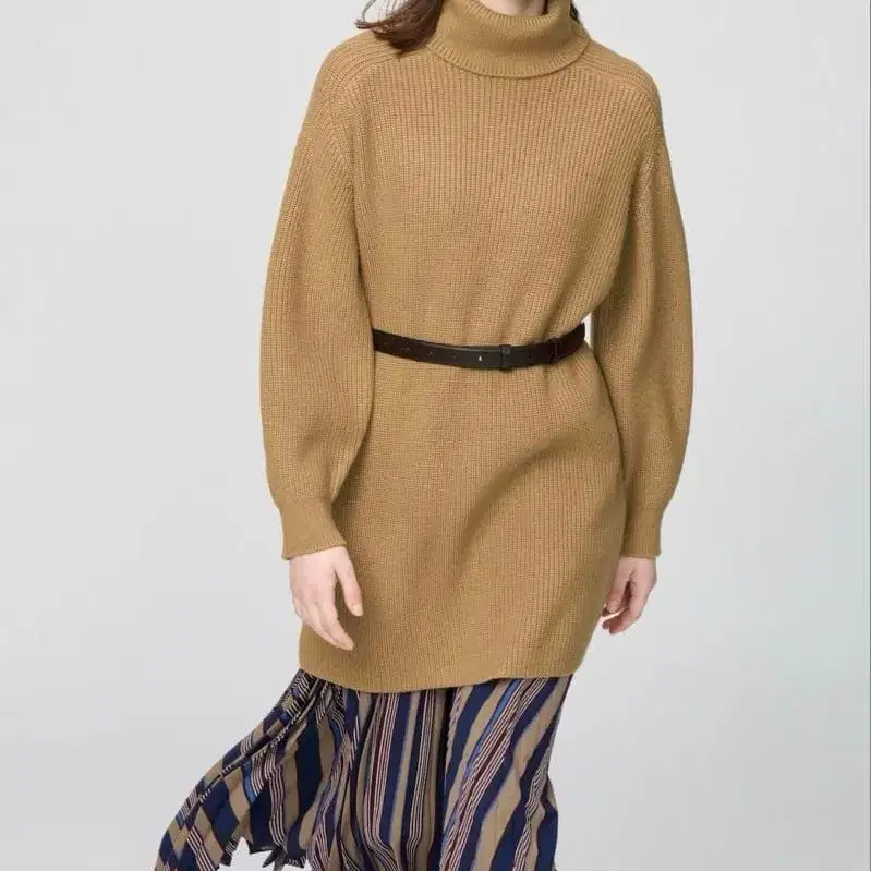 유니클로 니트 원피스 롱 기장 무지 캐주얼 가을/겨울 터틀넥