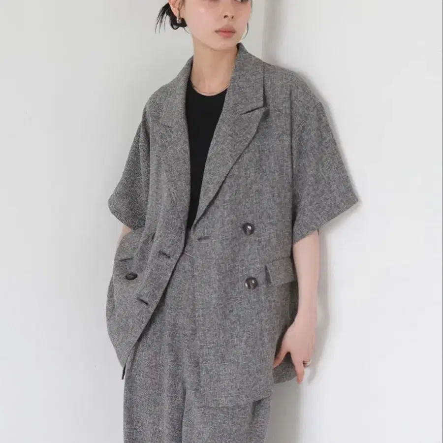 • TO BE CHIC 그레이 비쥬 장식 노카라 자켓 46