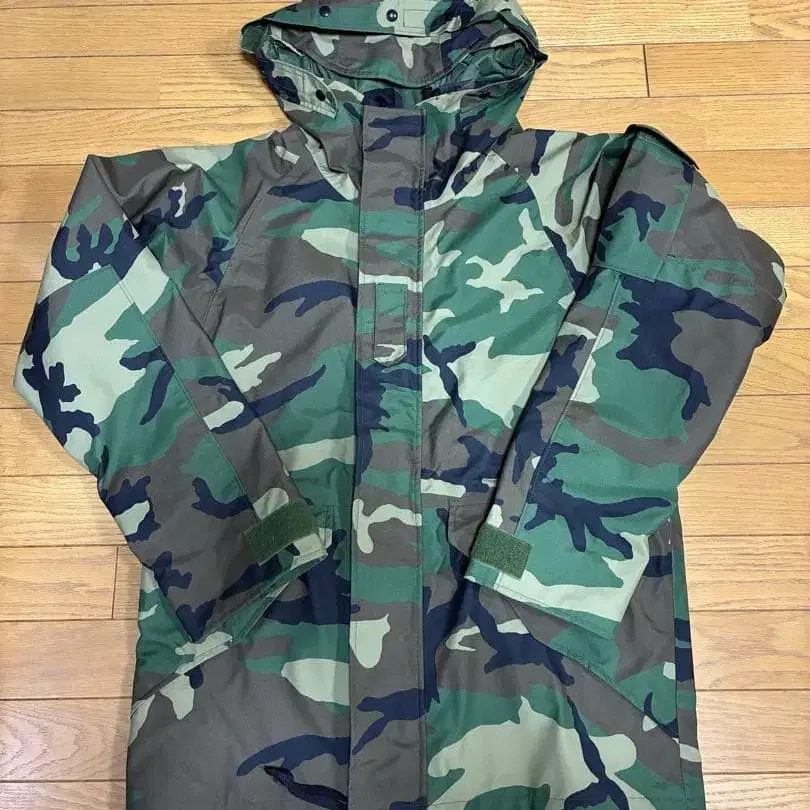 자동 번역되었어요. 원문보기카모플라쥬 디자인의 밀리터리 자켓, 탈부착 가능한 후드 부착, 경량 소재로 쾌적한 착용감.