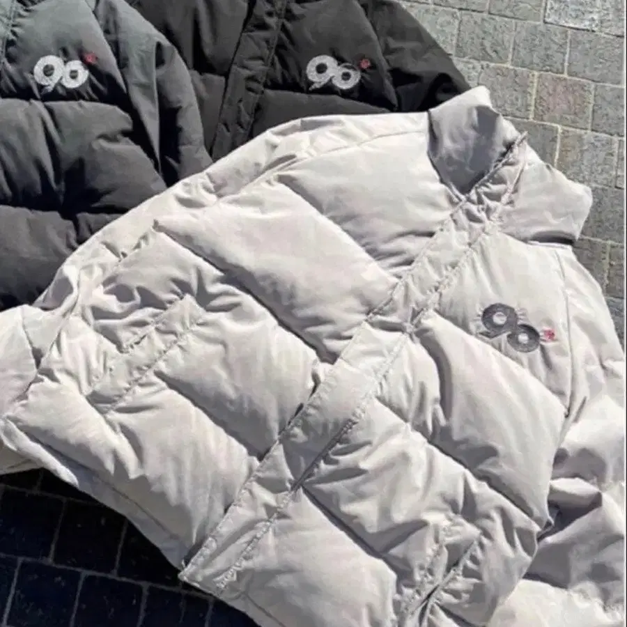 9090 로고 리치 퍼퍼 재킷 라이트 그레이