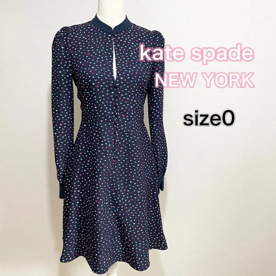 사이즈 0 케이트 스페이드 긴팔 롱 원피스 립 올 패턴 네이비