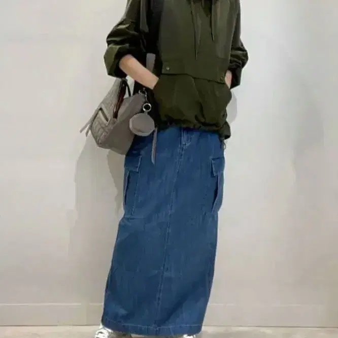 [ 완판템 ] HTH 카고 데님 스커트 빈티지 가공 S 그레이 새상품급