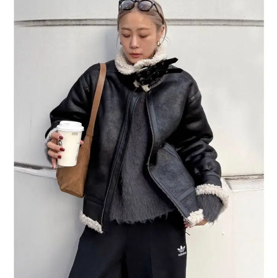 LOWRYS FARM 무스탕 보아 블루종 블랙