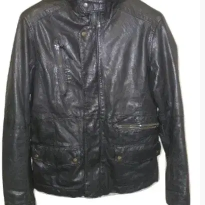 자동 번역되었어요. 원문보기후드 부착 블랙 가죽 자켓, 실용적인 포켓과 스타일리시한 디자인.