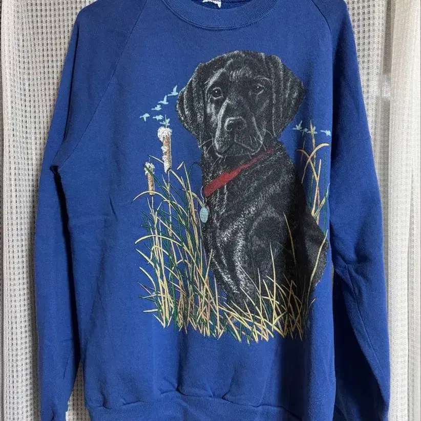 구제 의류 강아지 도그 래브라도 리트리버 프린트 파랑 맨투맨 트레이닝복