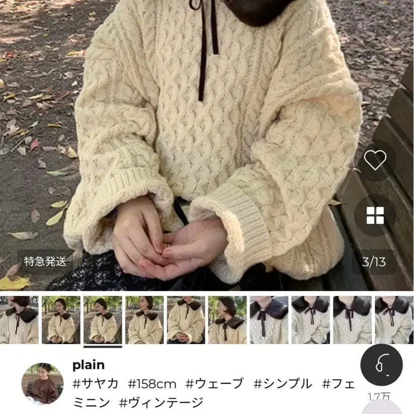 nugu에서 구매했습니다. 긴팔 니트와 퍼 세트로 판매합니다. 크림색 오버 사이즈 케이블 니트, 브라운색 목에 거는 끈 포함 퍼입니다. 캐주얼 스타일에 퍼를 더하면 걸리시한 분위기로 연출 가능합니다. 시착 후 집에서 클리닝했지만, 한 번도 사용하지 않았습니다. - 색상: 크림색 - 디자인: 케이블 니트 - 스타일: 오버 사이즈 - 착용 장면: 캐주얼 - 사이즈: 프리 사이즈 방문해 주셔서 감사합니다.