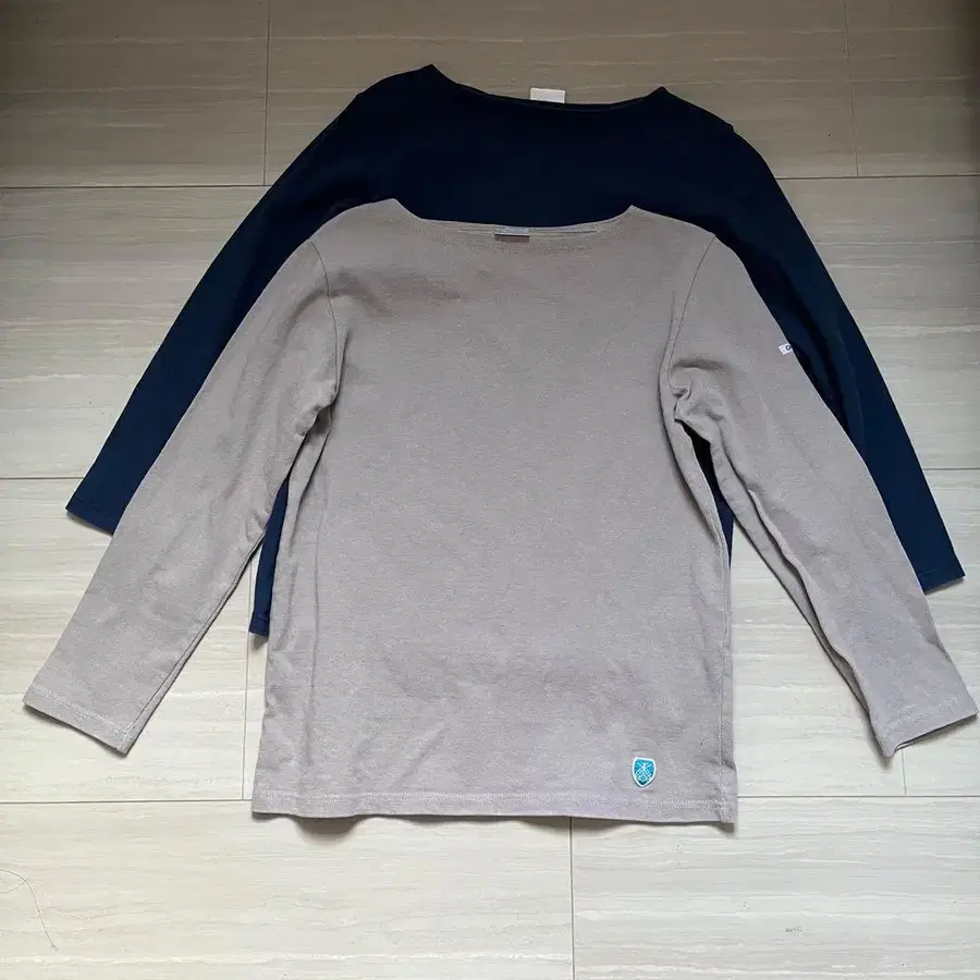 그레이와 네이비 색상의 긴팔 T셔츠, 라운드넥 디자인, 로고 포함. - 색상: 그레이 - 색상: 네이비 - 디자인: 라운드넥 - 특징: 긴팔 - 특징: 로고 포함 방문해 주셔서 감사합니다. 사이즈 - L 상당 (사이즈 2입니다.) 색상 - 네이비 계열, 베이지 계열 패턴 디자인 - 무지 계절감 - 봄, 가을, 겨울 얼룩, 찢김, 냄새 등 - 없음 마음에 들어 착용했었지만, 제가 살이 쪄서 사이즈가 맞지 않게 되어 판매합니다. 눈에 띄는 얼룩은 없지만, 중고품이라는 점을 이해해 주시면 감사하겠습니다. 무지이고 무난한 색상이라 어떤 옷에도 잘 어울리며, 원단이 고급스러워서 세탁 후 널기만 해도 주름이 지지 않고 빳빳합니다. 잘 부탁드립니다.
