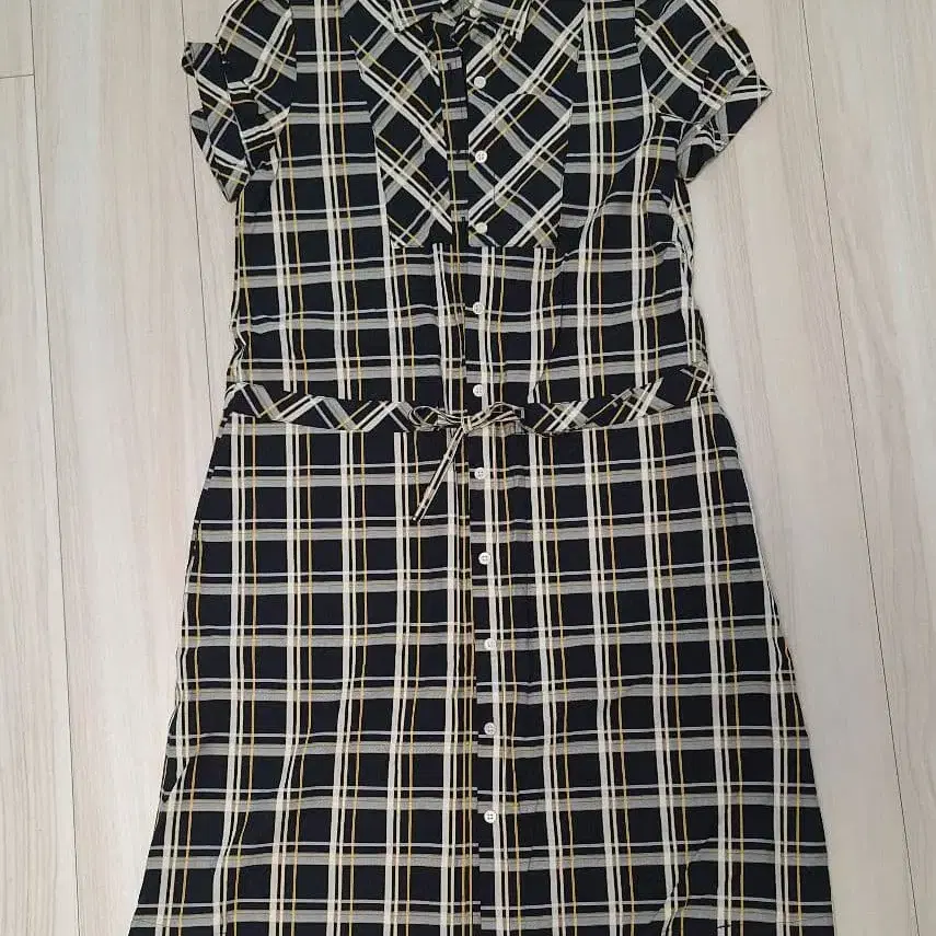 체크 무늬 반팔 무릎 기장 원피스 M~L 사이즈 상당