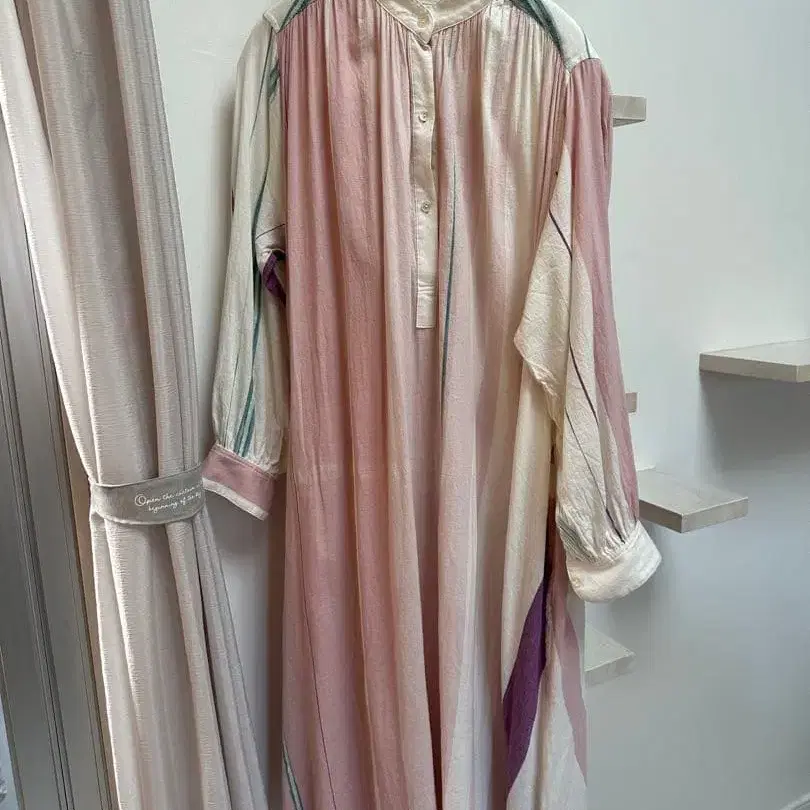 • LA6400 토카 긴팔 자수 롱 원피스 베이지 나일론 6