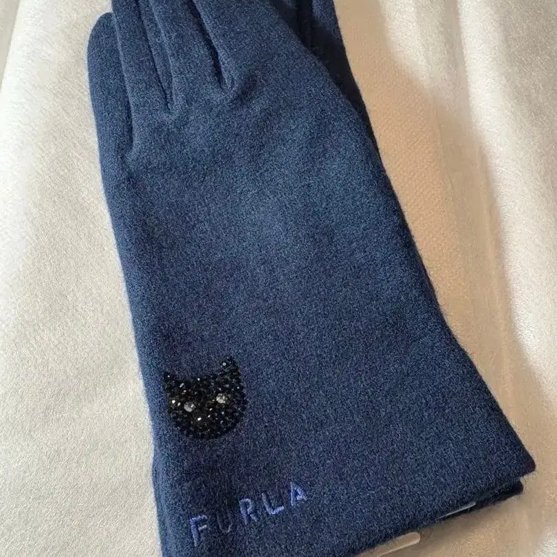 FURLA 네이비 장갑 고양이 자수 미사용 새상품