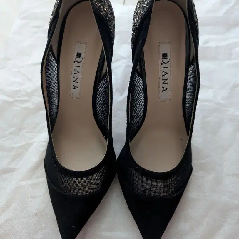 메쉬와 스웨이드 콤비로 화려한 힐. - 브랜드: Diana - 색상: 블랙 - 디자인: 메쉬와 스웨이드 콤비네이션 - 힐 높이: 약 7.5cm - 밑창 색상: 레드 방문해 주셔서 감사합니다. 한 번 밖에서 시착했습니다.