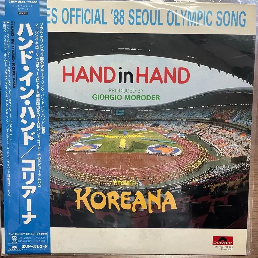 1988년 서울 올림픽 공식 곡 [ HAND in HAND ]을 수록한 KOREANA의 CD.