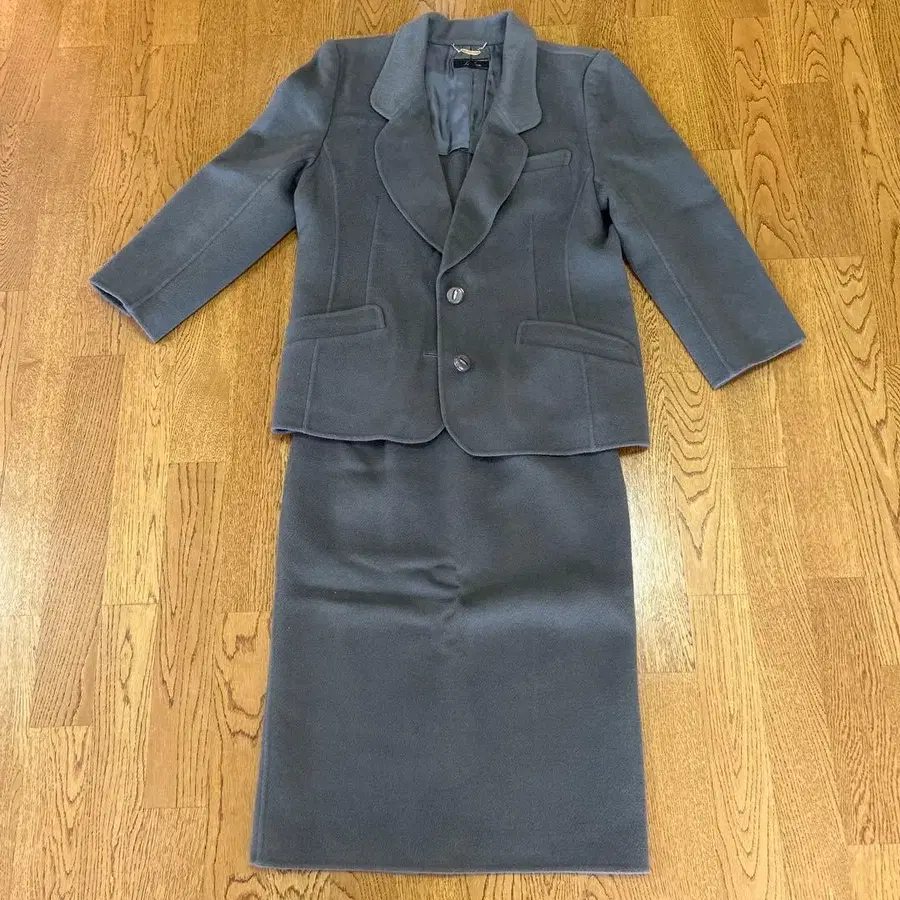 울 100% 그레이 정장 세트, 긴팔 자켓과 스커트 디자인. - 색상: 그레이 - 소재: 울 100%, 큐프라 100% - 스타일: 정장 세트 - 디자인: 자켓과 스커트 세트 - 소매: 긴팔 방문해 주셔서 감사합니다. 컬러 - 그레이 계열 사이즈 - 스커트 평평하게 놓았을 때 허리 약 37cm, 길이 약 66cm
