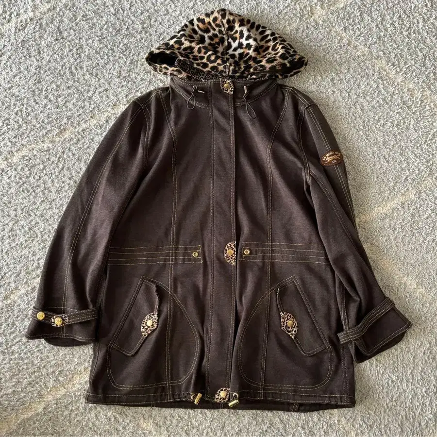레오파드 무늬 후드가 달린 후디입니다. 등 부분에는 반짝이는 장식이 달려 있고, 곳곳의 레오파드 스티치가 멋지게 갸루 남자 느낌을 내주어 아주 귀여워요. 가격 인하 협상도 접수하고 있으니 댓글 부탁드립니다.