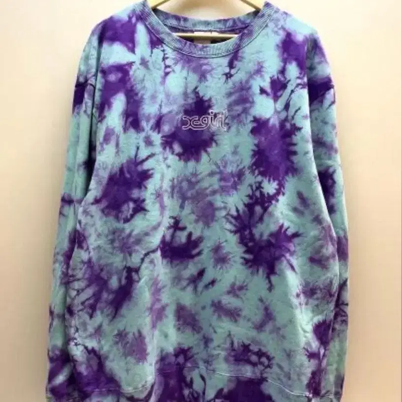 보라색과 스카이블루 색상의 타이 다이 디자인 xgirl 롱 슬리브 트레이닝복. - 브랜드: xgirl - 색상: 보라색과 스카이블루 타이 다이 - 스타일: 롱 슬리브 - 디자인: 얼굴 로고 택 방문해 주셔서 감사합니다. 사이즈 - M