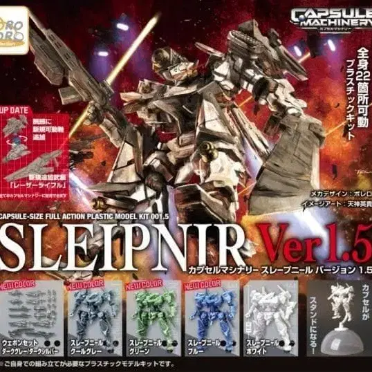 [ 캡슐 머시너리 SLEIPNIR 버전 1.5 ] 전 6종 풀컴프 세트 SLEIPNIR 화이트 SLEIPNIR 블루 SLEIPNIR 그린 SLEIPNIR 쿨 그레이 웨폰 세트 다크 그레이 웨폰 세트 다크 실버 미개봉 새상품 개수만큼의 미니 카탈로그 포함 ※ 캡슐은 부속되지 않습니다. 유유 메루카리 택배로 발송 초기 불량 등은 제조사에 직접 문의 부탁드립니다. 가챠 가챠가챠 가챠폰 캡슐 토이 SLEIPNIR CAPSULE MACHINERY