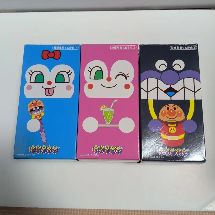 호빵맨 캐릭터가 디자인된 3개 세트의 블록 라보 아이템. - 캐릭터: 호빵맨 - 색상: 파랑, 핑크, 블랙 - 수량: 3개 세트 - 소재: ABS 수지 방문해 주셔서 감사합니다. 캐릭터명 - 호빵맨 아이템/종류별 - 블록 라보