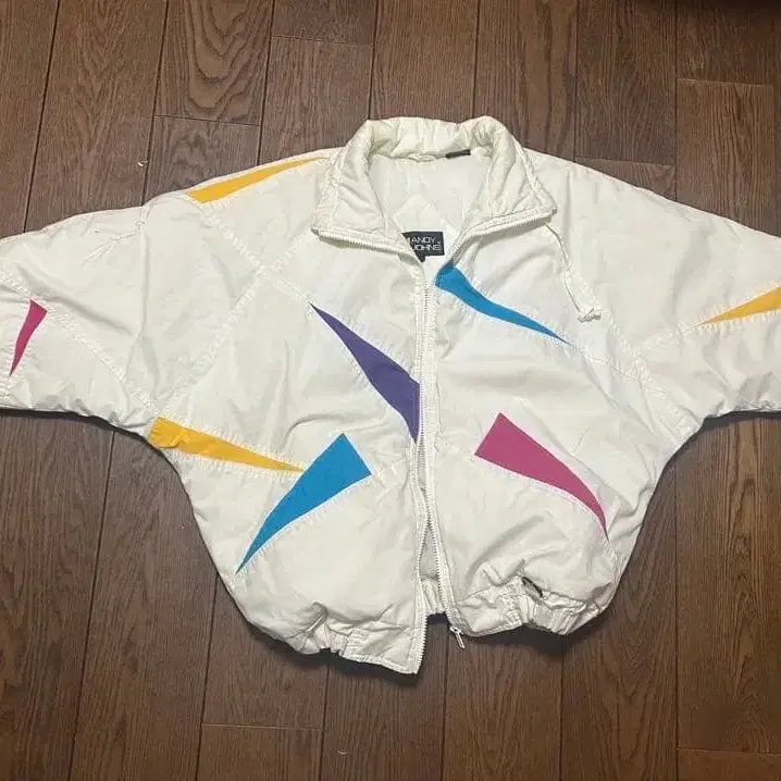 화이트 색상 짧은 기장 다운 - 브랜드: ANDY JOHNS - 색상: 화이트/멀티 컬러 - 사이즈: M - 디자인: 지퍼 포함, 컬러풀한 디자인 방문해 주셔서 감사합니다.