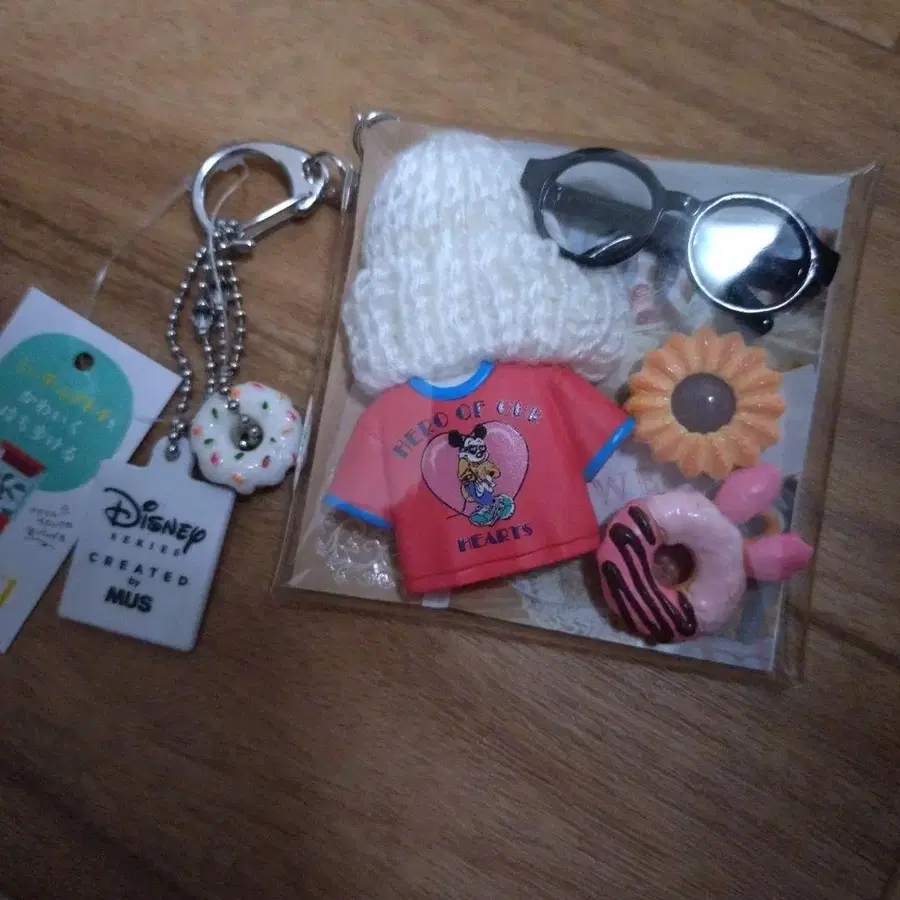 미키와 디즈니 모티브의 도넛, 미니어처 등을 채운 가챠 파우치입니다.