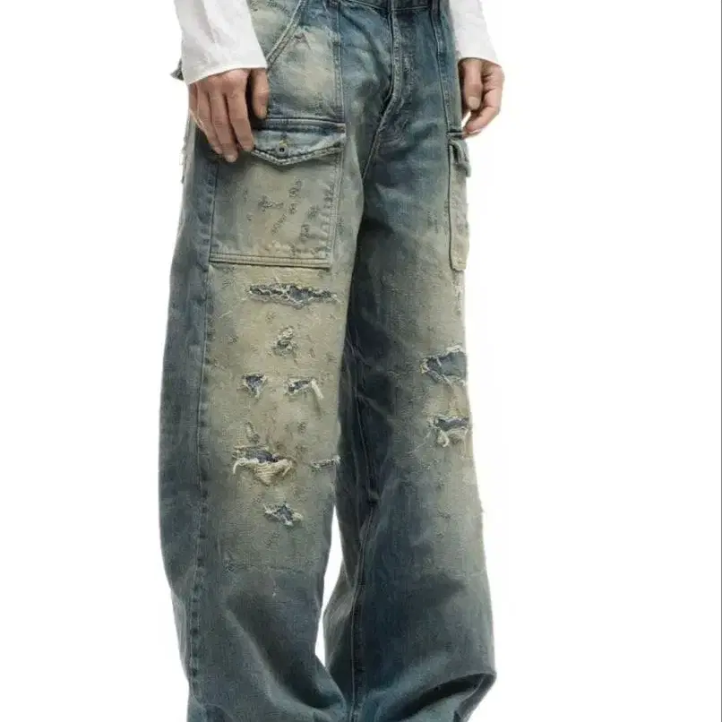 디스트로이 데님 크러스트 팬츠 guapi풍 리프로덕트 빅 사이즈 42