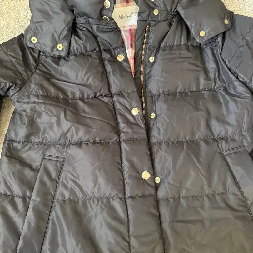 블랙 다운 자켓, 탈부착 가능한 후드 부착, 체크 무늬 안쪽 디자인. - 브랜드: MACKINTOSH PHILOSOPHY - 안쪽 디자인: 체크 무늬 - 색상: 블랙 - 포켓: 2개의 사이드 포켓 - 후드: 탈부착 가능한 후드 방문해 주셔서 감사합니다.