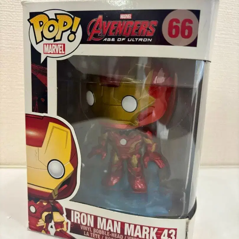 어벤져스: 에이지 오브 울트론 아이언맨 마크 43 버블헤드 피규어, 미개봉. 미사용 새상품이지만, 본체 목 부분에 노후화로 인한 얼룩 있음(사진 2장). - 브랜드: POP! Marvel - 모델명: Iron Man Mark 43 - 시리즈: Avengers: Age of Ultron - 피규어 종류: Vinyl Bobble-Head - 번호: 66 - 특징: 버블헤드 디자인 - 패키지 상태: 미개봉 방문해 주셔서 감사합니다.