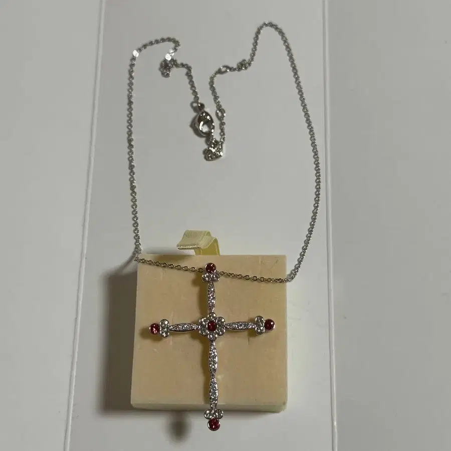 스와로브스키의 빨간색과 클리어 크리스탈로 장식된 크로스형 목걸이입니다.